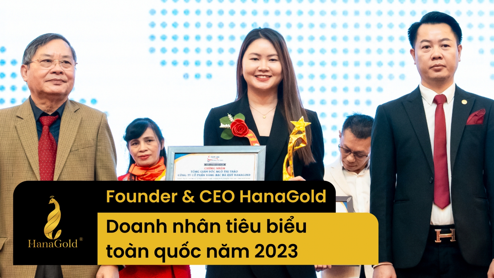 Không chỉ là người sáng lập một doanh nghiệp tiên phong trong chuyển đổi số ngành vàng bạc, Hana Ngô còn là một nữ doanh nhân tiêu biểu toàn quốc năm 2023, được vinh danh nhờ những đóng góp xuất sắc cho phong trào khởi nghiệp và đổi mới sáng tạo.