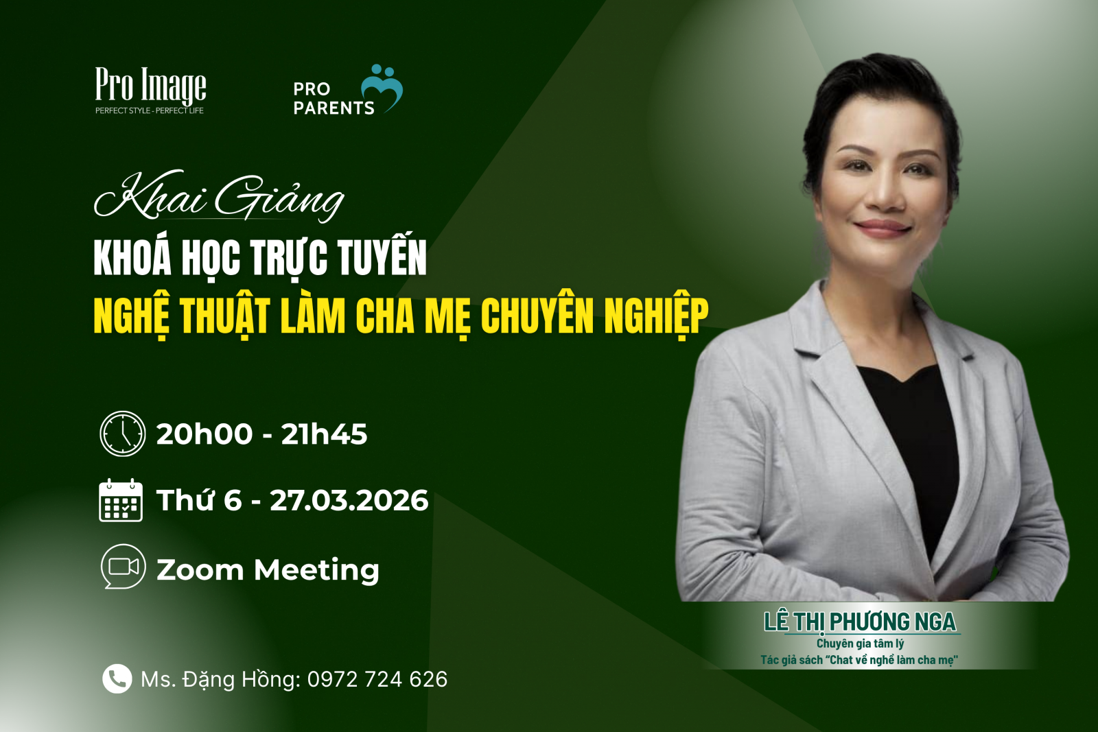 Đăng ký ngay khóa học trực tuyến Nghệ thuật làm cha mẹ chuyên nghiệp cùng Học viện Pro Image và cộng đồng Làm cha mẹ chuyên nghiệp Pro Parent.
