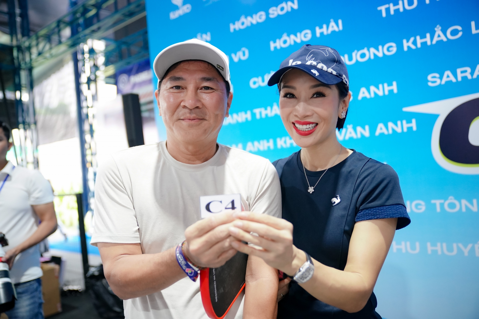 Trong dàn vận động viên tham dự, Á hậu Quý bà Thế giới – TS. Nguyễn Thu Hương và chồng – doanh nhân Nguyễn Hoài Nam là một trong những cặp đôi gây chú ý. Chia sẻ sau trận đấu, chị Hương hài hước kể: “Đi đánh giải Couple, lúc đầu hai vợ chồng đứng chung sân thì đánh 3 trận thua nhanh chưa kịp toát mồ hôi. Vậy mà khi tách nhau ra, chồng Hương đứng cùng siêu mẫu Lê Thúy thì thăng hoa đến mức vào trận chung kết và giành giải Nhì, còn mình may mắn bắt cặp với nhạc sĩ OnlyC, vào tới tứ kết và giành giải Ba. Dù là ‘vợ chồng tương tàn’ trên sân Pick, nhưng cả hai đều có giải, vui không gì bằng!”