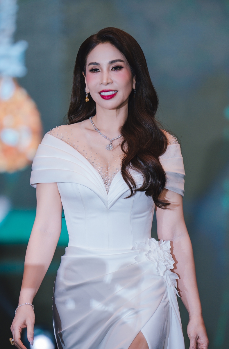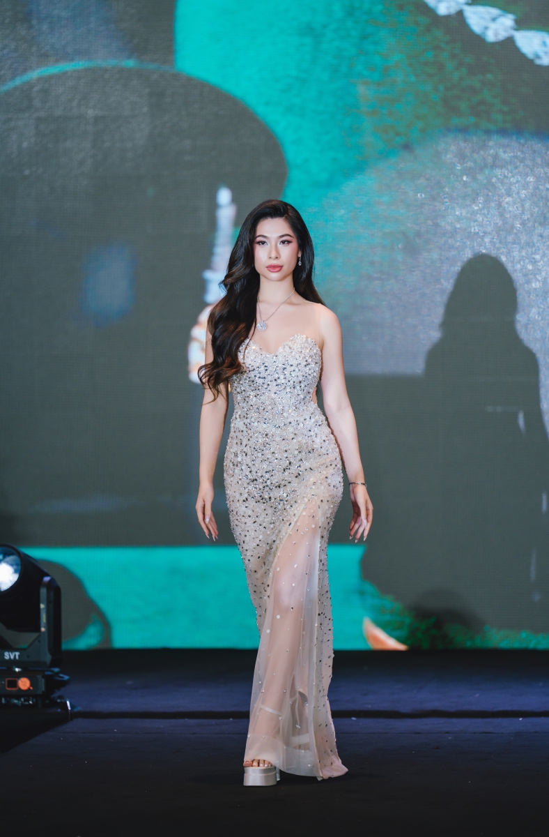 Nữ hoàng Quyền năng Phái đẹp Maria Trúc Trần xuất hiện đầy uyển chuyển với ánh nhìn tự tin và bước đi vững vàng hòa quyện cùng kim cương, tạo nên hình ảnh của một nữ hoàng không cần phô trương