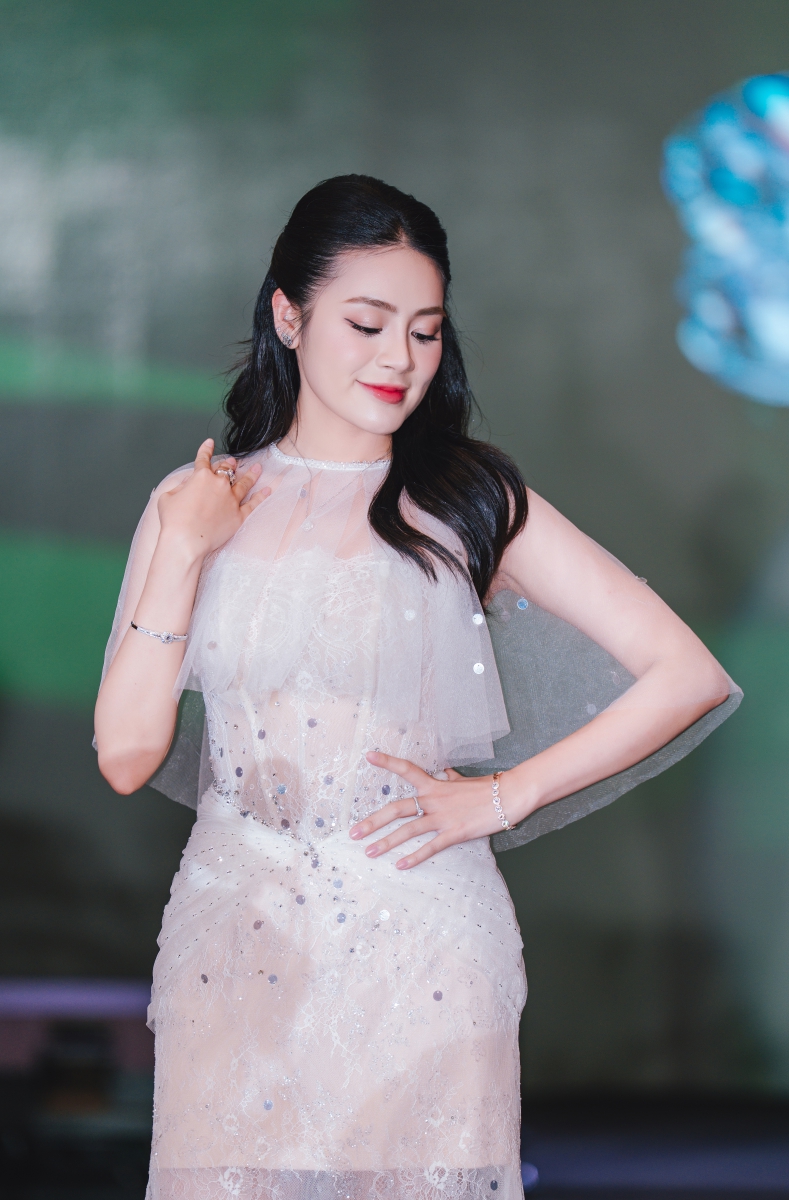 Á hậu Băng Châu tỏa sáng trong thiết kế kim cương màu thuộc Special Design & Color Diamonds. Phom dáng tinh giản kết hợp sắc độ kim cương quý hiếm tạo nên vẻ đẹp thanh tao, hiện đại - nơi khí chất trí tuệ và vẻ đẹp nội lực được tôn vinh một cách tinh tế