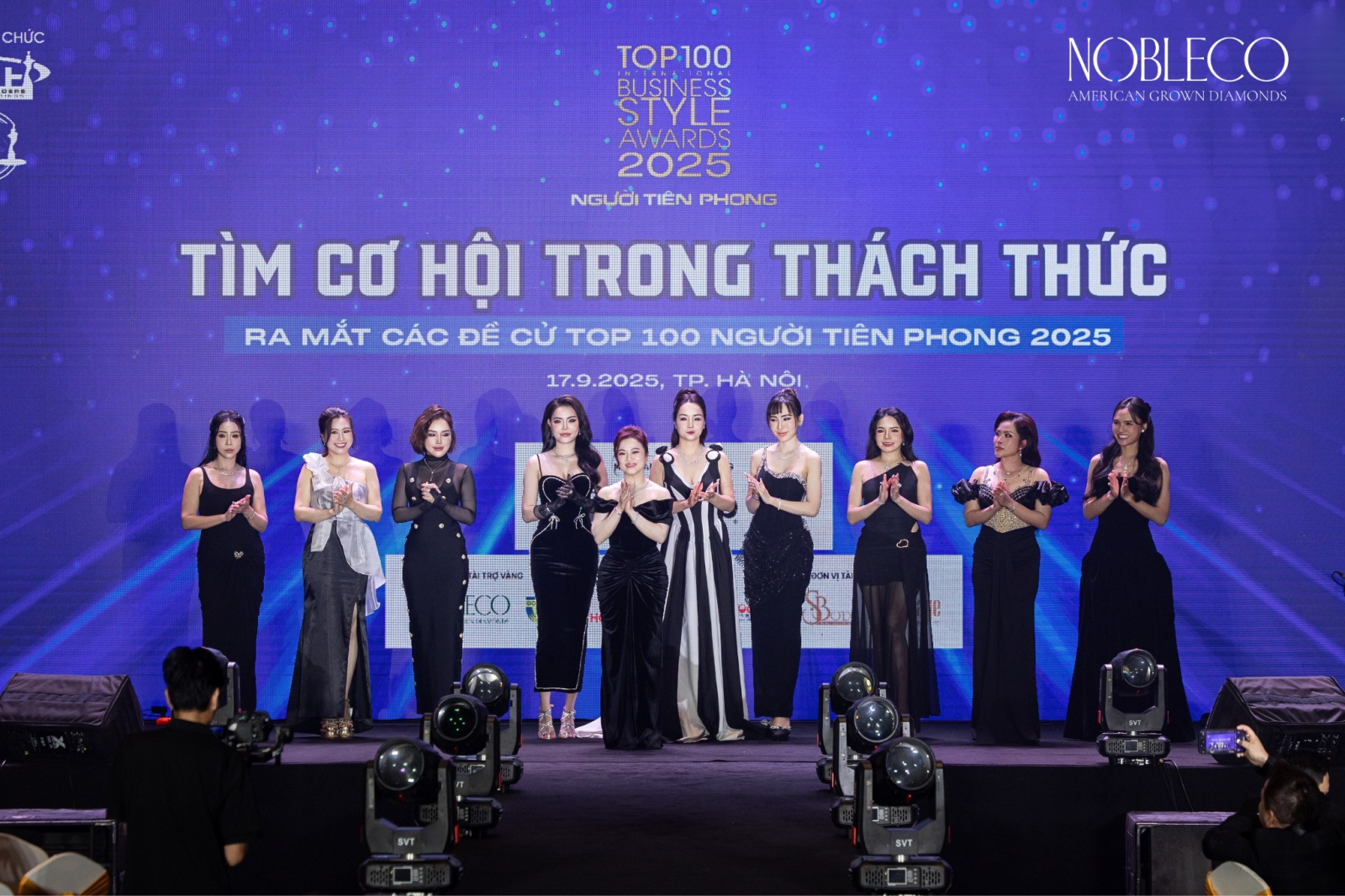 Doanh nhân Katy Nguyễn (giữa) nhận vinh danh Doanh nhân tiên phong tại Top 100 Người tiên phong 2025